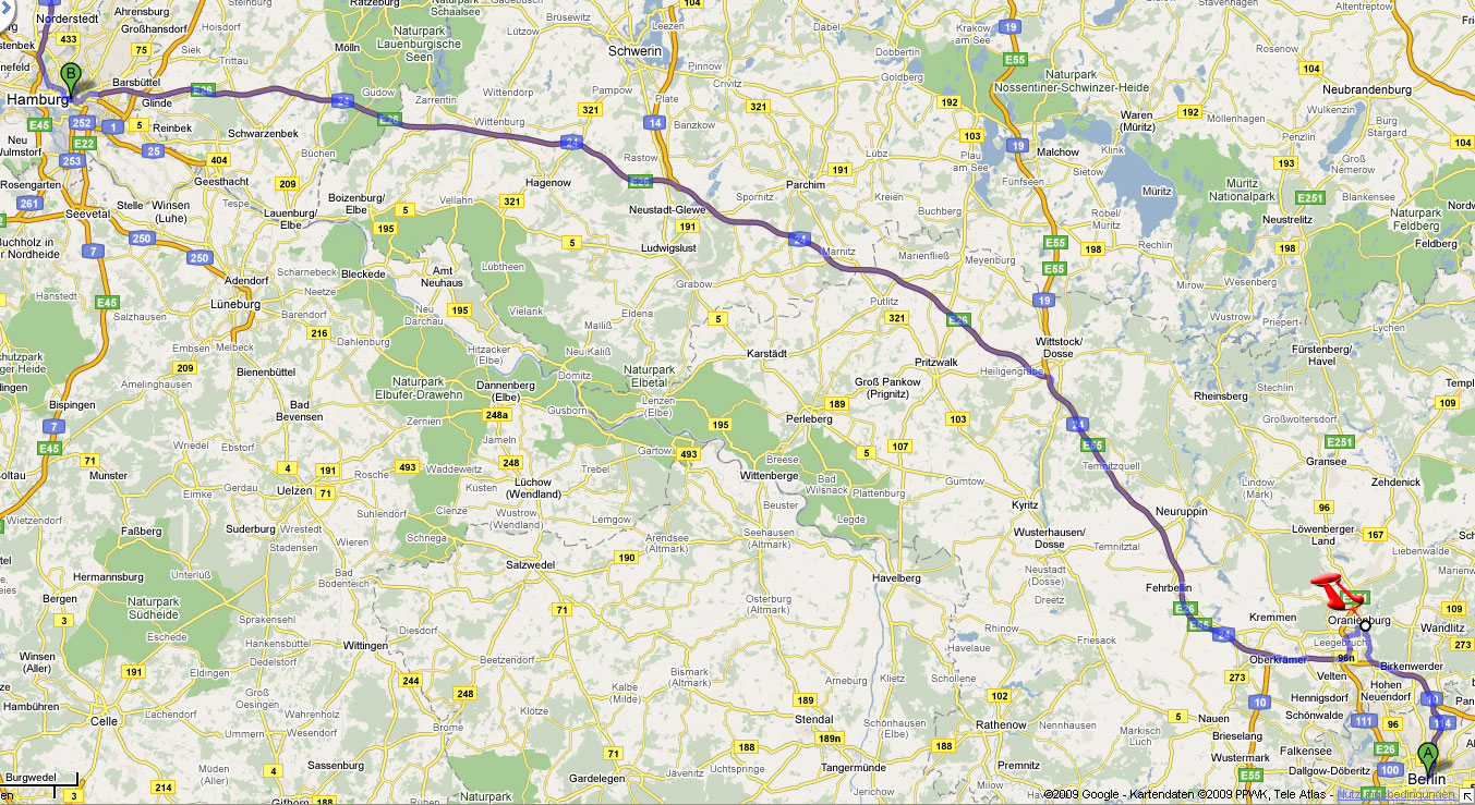 Auf dieser Etappe war nichts Konkretes geplant. Lediglich ein Stopp in Senftenberg (roter Pin) und der grobe Plan in Berlin einige Sehenswürdigkeiten aufzusuchen standen auf dem Zettel. Die Umgebung von Senftenberg sah zunächst etwas nach Mondlandschaft aus. Lag zum einen an der neuen Umgehungsstraße und zum anderen am ehemaligen Tagebau. Durch die vielen (künstlichen) Seen im Sommer sicherlich weitaus interessanter als zu dieser Jahreszeit. Ansonsten sah man dem Städtchen den Osten nicht an. Von anderen Orten kann ich das nicht behaupten. Auf dem weiteren Wege nach Berlin wurde dann noch am Tropical Islands (grüner Pin) halt gemacht. Einem Badeparadies in dem ehemaligen Hangar des Cargolifters. Leider waren mir die Eintrittspreise für einen Kurzbesuch doch etwas zu hoch.Also ging es weiter nach Berlin um dort das Holocaustmahnmal unweit des Brandenburger Tores zu besichtigen. Das Stelenfeld an der Oberfläche erfüllt seinen Zweck der Unübersehbarkeit. Was einem dieses Feld jedoch beim durchwandern sagen soll, das bleibt, wie vom Künstler gewollt, jedem selbst überlassen. Interessanterweise setzt sich die Architektur im Museum unter dem Feld fort. Jedoch erst nachdem man es durch die flughafengleiche Sicherheitskontrolle geschafft hat. Ob Nagelscheren und Flüssigkeiten mit hineingenommen werden dürfen konnte ich mangels entsprechender Objekte nicht ausprobieren. Aber es war ja nicht mein letztes Mal in Berlin.
