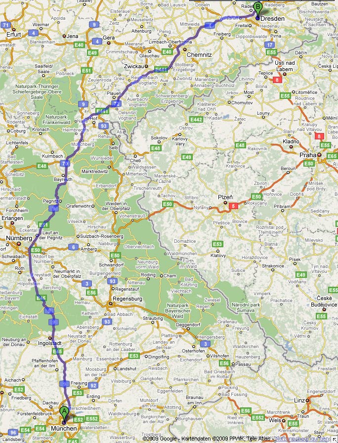Dies wird, was die Fahrt angeht, wieder eine ohne besondere Sehenswürdigkeiten. Ein kurzer Stopp in Ingolstadt in der Ingolstadt-Village, einem Outlet-Store-Konglomerat ist eingeplant. Da ich jedoch mittags schon in Dresden sein möchte um dort noch einige Stellen in der Innenstadt zu sehen, die ich bei meinem Besuch vor einem Jahr nicht gesehen habe, werde ich mich in Ingolstadt nicht allzulange aufhalten.Von der Route her wird diese demnach auch unspektakulär über die Autobahn führen.