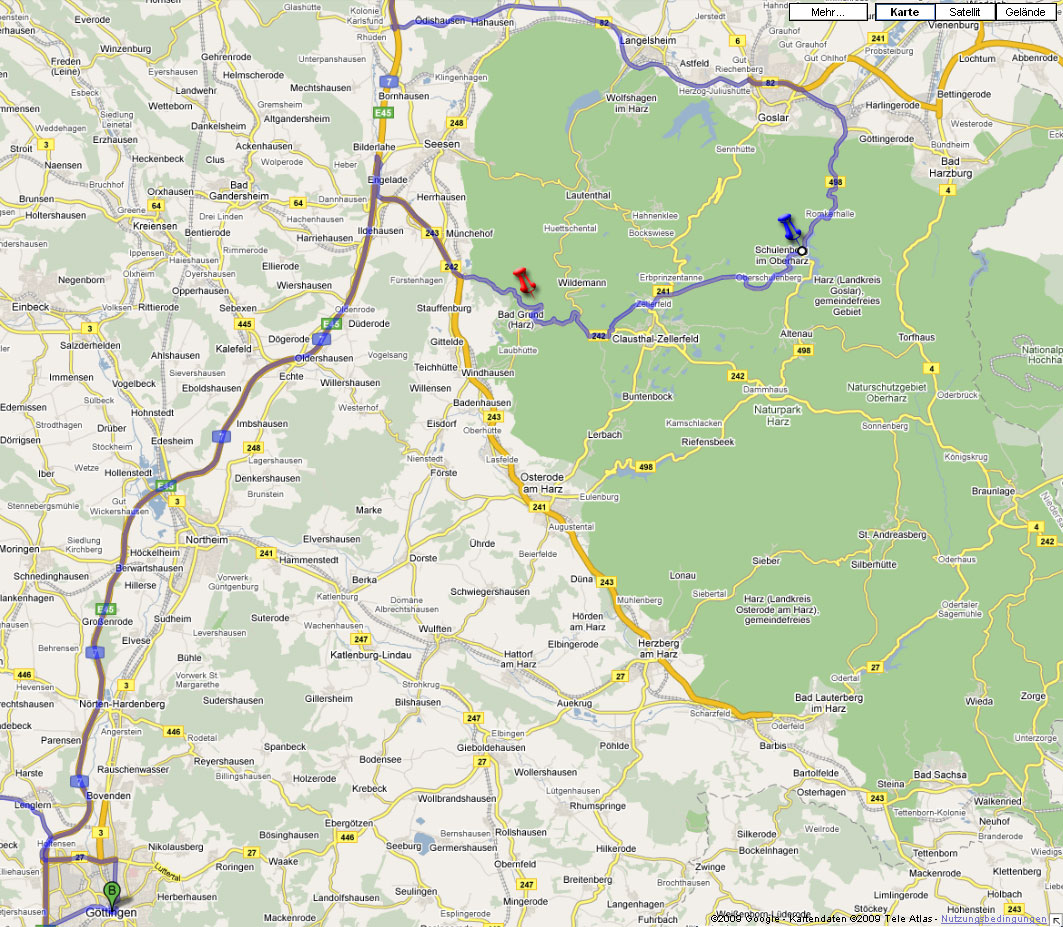Im Harz angekommen wird mich dann mein Weg zu Okertalsperre und -stausee führen (blauer Pin) um danach noch in der Iberger Tropfsteinhöhle (roter Pin) ein, Zitat: "faszinierendes Highlight deutscher Höhlenarchäologie" zu erleben. Ich bin gespannt. Auch was das Wetter angeht.